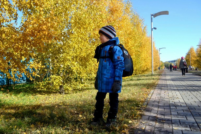 Тоже что и раньше носил осенью))) ну единственное, я бы выбрала расцветку поспокойнее)) ветровка, парка, куртка. То в чем будет удобно не только до школы дойти, но и погулять после.