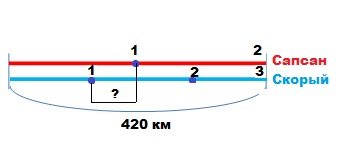 Скорый поезд проходит 420 км за 3 часа, а Сапсан - за 2 часа. Скорость какого поезда больше и на сколько?