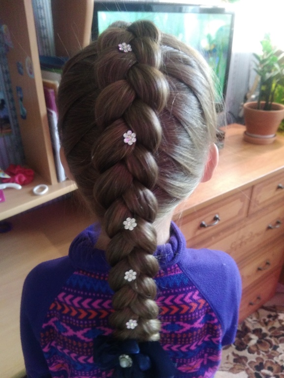 не умею плести косы, а если еще точнее, то муж собирал и возил ее в школу