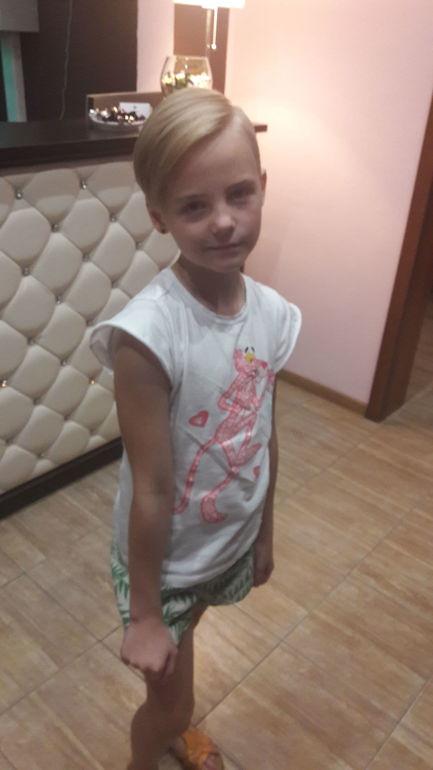 На вкус и цвет... Была девочка, а стало ... оно... Я понимаю, когда в подростковом возрасте дети "чудят", но в 7 лет... Видимо на маму хочет быть похожей?