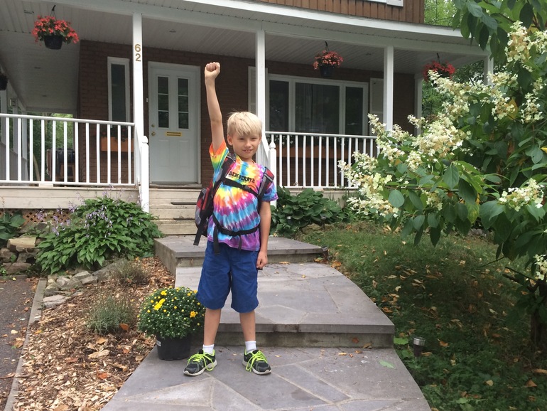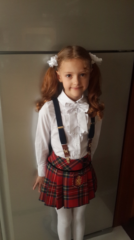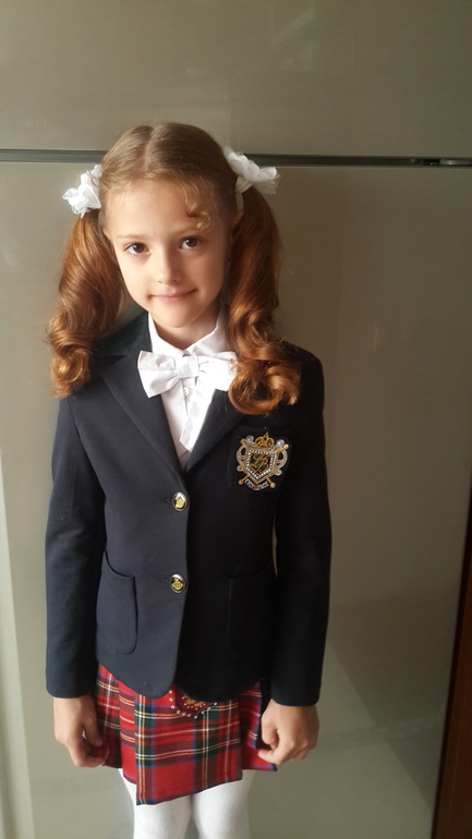 А еще мы нарядные пойдем на сборы. У нас они торжественно проходят для первоклассников. И при параде надо быть уже завтра.Пойдем примерно так.