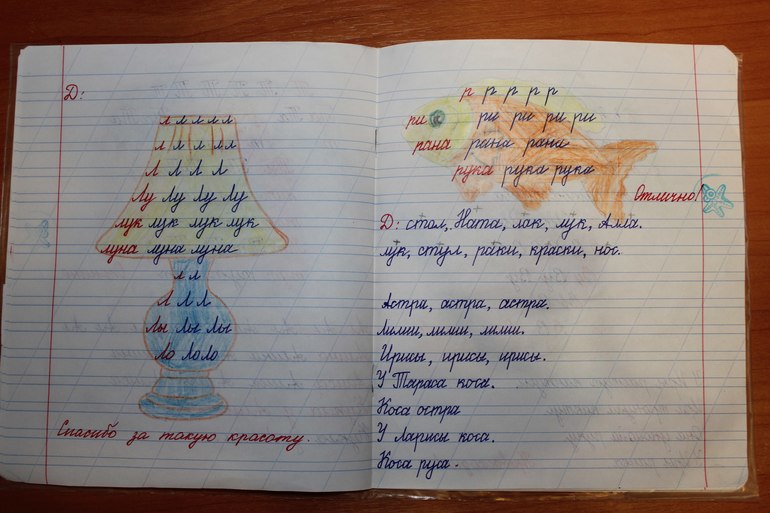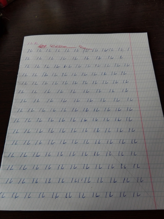 Спасибо, поняла. Она пишет отдельно в тетради в косую полоску, но пока вот так