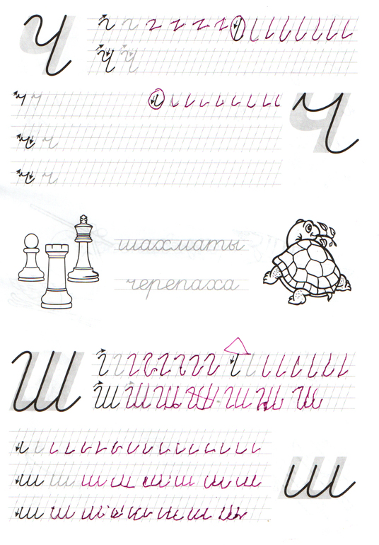 Мой не понял вначале, для чего линии. Когда объяснила, что в помощь ему же, обрадовался и стал писать аккуратнее. Но тоже буквы были скорее прямые, чем наклонные. Ещё у каждого была тетрадь в косую линейку, где учитель рисовала буквы, которые этому конкретному ребенку нужно прописать. Сейчас (3 класс) не самый плохой почерк в классе.