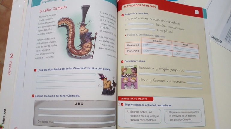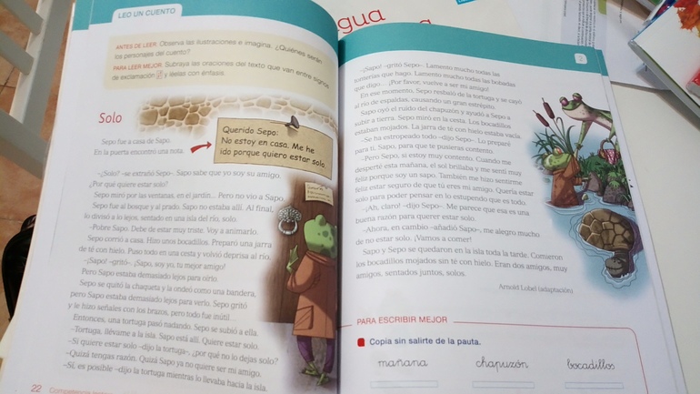 Испанский язык, который сами испанцы называют "кастеяно", кастильский. Три учебника, по одному на каждый триместр (в Испании нет осенних каникул, учатся с сентября по рождество, с февраля по пасху и и с середины апреля по конец июня, три триместра соответственно).
