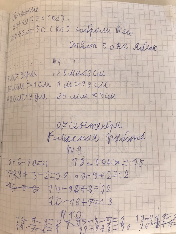 Почерк почерком, но вас не смущает, что написано клаСная работа + зачеркивания - это явно не 5 уже. Цифры некоторые вообще нечитабельны - вот это плохо совсем, т.к. непонятно то ли кривая цифра, то ли неправильный ответ. Вот например внизу по центру пример 13-9+8=11?