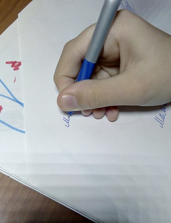 Первый класс. Не про вещи.Кто-нибудь сталкивался с такой проблемой? У меня уже нервов не хватает. Ручку держит большой палец заходит в нахлест сверху ручки. Ручка с выемками под пальцы не помогает. Ребенок упертый с характером, мои попытки не воспринимает. Что делать???? К слову муж у меня почему-то тоже так ручку держит.