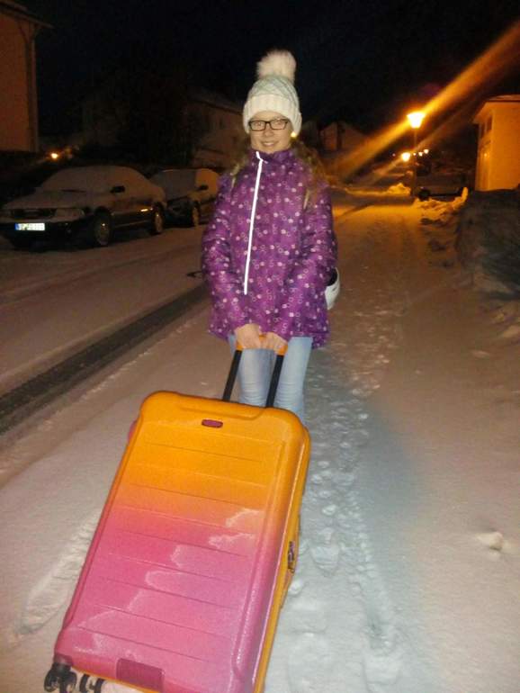 И вот оно, 28 января...уже за неделю до этого моя мадам уговорила папу притащить ей чемодан и началось "...нужны трусы, носки, красивые кофточки. О, мам ещё крем..обязательно. А как же я девушка!" 🤦♀️На моё замечание, что нужно сделать упор на тёплые вещи, она делала большие глаза и твердила мне о том, что ещё обязательно нужен купальник! Ведь они вечером идут отдыхать в бассейн)) И деньги! ☝️Потому, что они идут делать шоппинг! Так сказала учительница..27 вечером мы с трудом закрыли чемодан, пристегнули шлем к рюкзаку и отправились спать. Вернее она спать, а я думать. Буквально за две недели до этого Германию и Австрию накрыли сильшейшие снегопады. И я думала вообще оставить Марию дома. Но учителя всё это время были на связи с родителями и говорили нам, что там нормальная обстановка. И они не стали бы рисковать нашими детьми. В общем отпустила я свою даму.