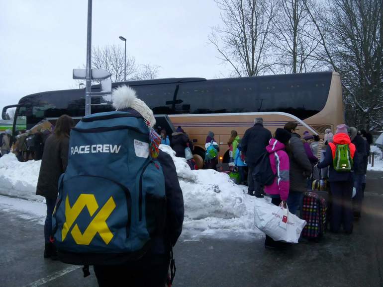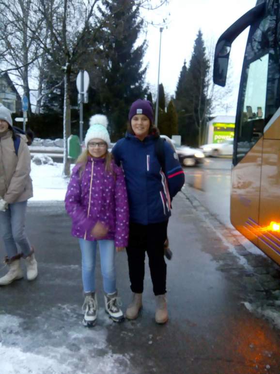 В 8 утра загрузили наших девчонок, чемоданы, лыжи.. а родители стоя у автобуса тайком вытирали подступающие слёзы и махали руками. 😞Дети были абсолютно счастливыми. А как же..ведь это их первое такое далёкое, долгое и интересное путешествие без родителей. На автобусе предстояло проехать 4,5 часа. В горы, на высоту более 2000 метров. И жить в настоящем отеле, совершенно самостоятельно. С двумя классами (на 45 девочек) поехало трое учителей и четыре инструктора по горным лыжам.