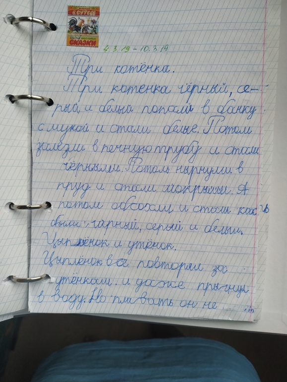 В том-то и дело, что по письму домашних заданий практически нет. Так ребенок нормально писать не научиться. Поэтому я каждый день прошу его писать. Чтобы со смыслом мы пишем пересказ. Каждый день по полстраницы (иногда чуть больше сейчас). В октябре/ноябре по две-три строчки всего писал.