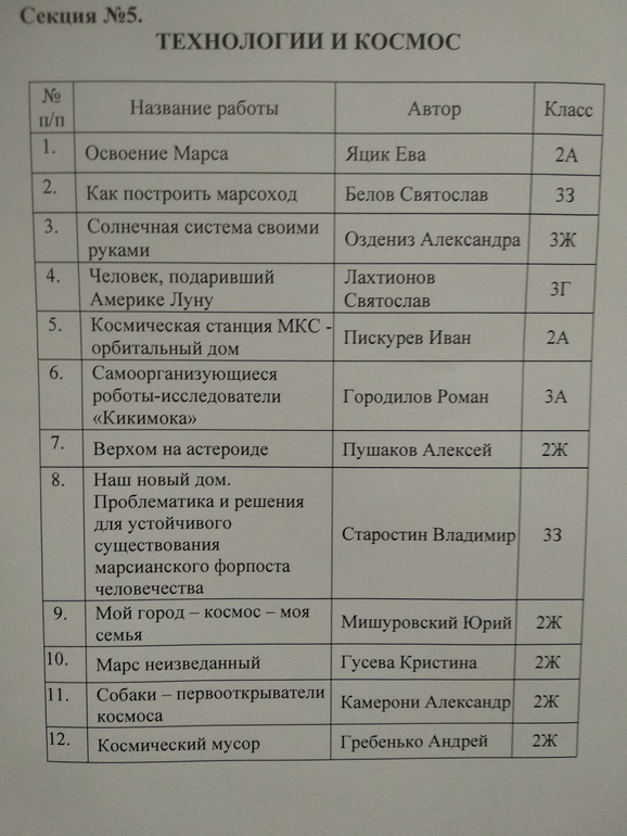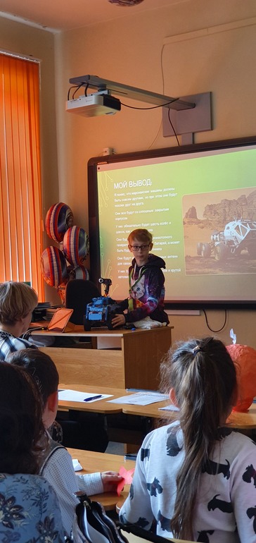 Сын с одноклассником выбрали перекликающиеся темы, рассказали про особенности построения баз на Марсе и машин для Марса :)