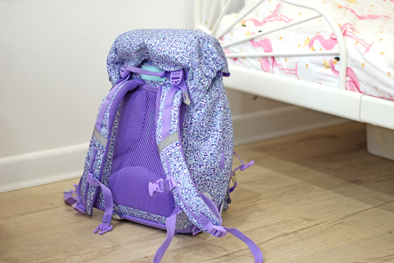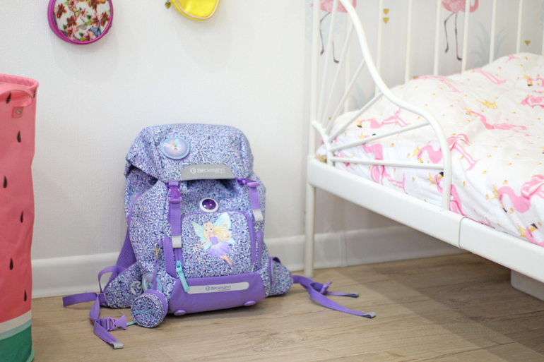 В нем нам понравилось всё! Сначала смотрели более светлую расцветку, но глядя на первоклашек, остановились на этом) Детали, молнии, швы - все очень качественное, ткань плотная, на ощупь типа мембраны, внутри как плащевка, есть отделение для альбомов и тетрадей формата А4. В нем нет жёсткого каркаса, но спинка правильная, лямки широкие, есть светоотражатели, поясной и нагрудные ремни, ножки. Объем 22 литра, вес около 900гр. Куча всяких карманов, боковой для бутылки, передний для ланчбокса и ништячки в виде дождевика, мигающего светодиода и съёмных декоративных элементов. Ну и внешний вид подкупил, конечно, аккуратный, но не скучный, lдаже с блёстками и эти липучки забавные, а ещё Варя как раз с феей хотела)