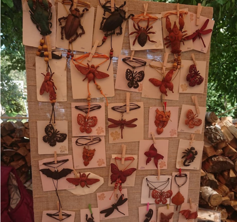 У местных мастериц купила 2 оригинальные брошки из кожи.