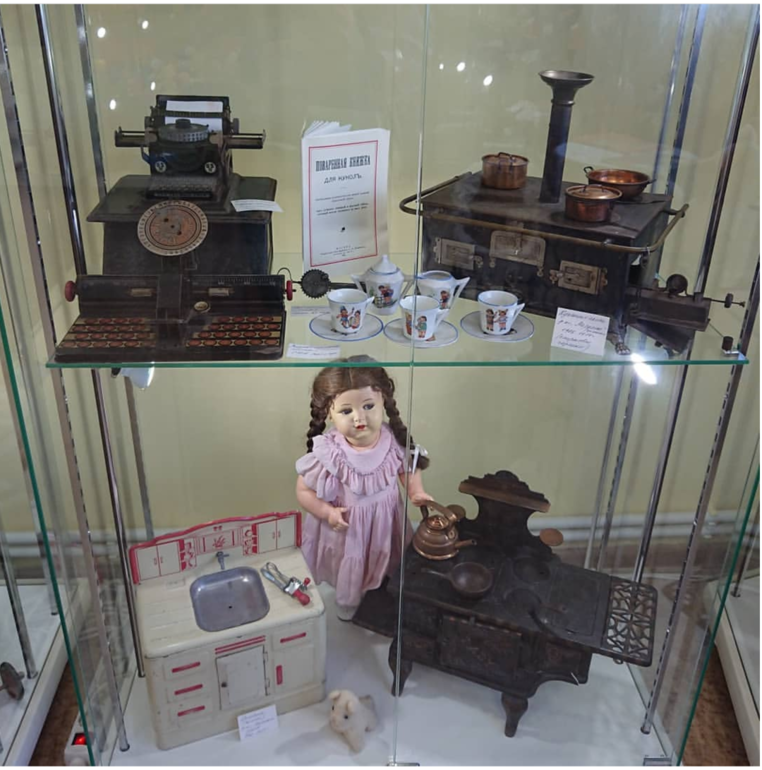 Ещё успели заскочить в музей игрушки напротив. Думали 20 минут нам хватит. Ан нет! Ребёнок впервые увидел советские игры и очень заинтересовался! Еле вытащили оттуда. А самое главное, если спрашивать, экскурсовод рассказывает такие интересные подробности про каждую игрушку!