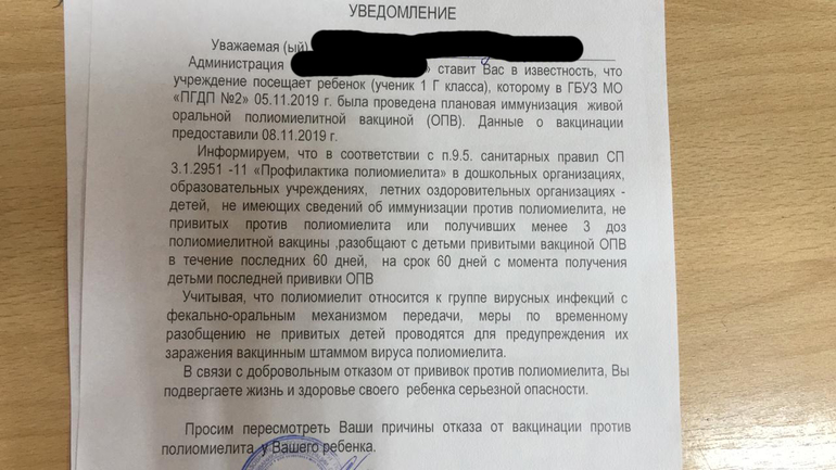 Подскажите, можно ли мне (маме непривитого ребенка) на основании этого "Уведомления" написать заявление и забрать ребенка на время "разобщения" (на оставшиеся полтора месяца) из школы?