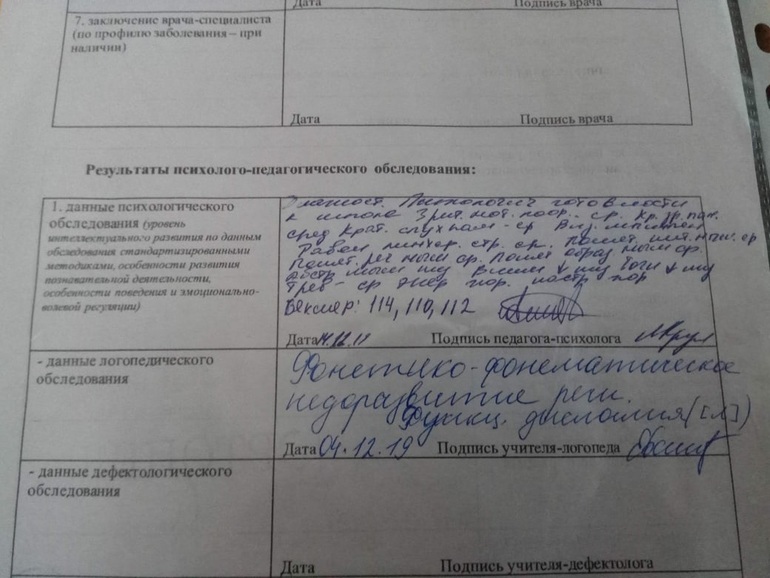 Это все было проведено специалистами ТМПК. Далее нужно пройти в поликлинике невролога, окулиста, ортопеда, лора, педиатра и психиатра в диспансере. Психиатр ориентируется на заключение психолога и логопеда, к нему нужно ехать только с имеющимися заключениями.