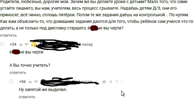 Кто это учитель? Я хочу к нему! Обнять и плакать! У нас ещё и журят детей, если заметят, что родители в домашке не участвовали, мол, сразу видно мамка заленилась.