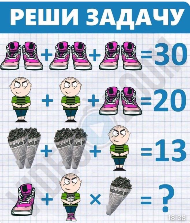 я рассматривала кеды, как 10. Ведь по логике символы -цифры не должны повторяться. А 5 -это мальчик. Соответственно, тот кед, что слева=это 1, а справа это 0.
