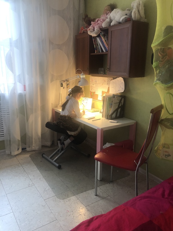 А ребёнок не устаёт на таком стуле? Видно, что тело держит на руках. Или руки уже привыкли к силе давления, и при этом ещё пишет.
