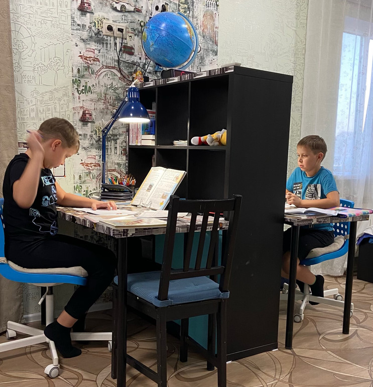 И ещё у нас есть одна фишка, дети всегда делают разное, если один делает математику, то второй пишет русский , для устных предметов у нас папин кабинет) во время творчества и рисунков каждый вояет и не заглядывает к брату,
