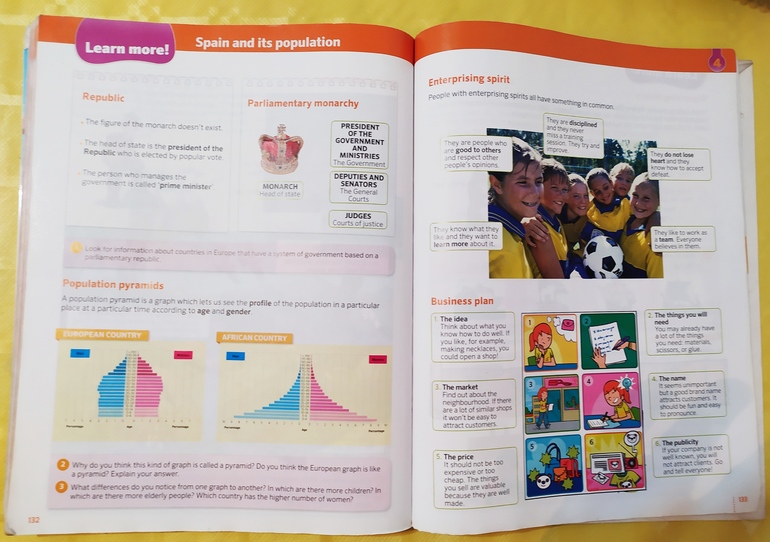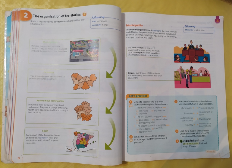 Тоже большие тексты. Наша школа считается трехязычной, то есть третья часть языков проходит на испанском, одна треть на английском и последняя на валенсийском.