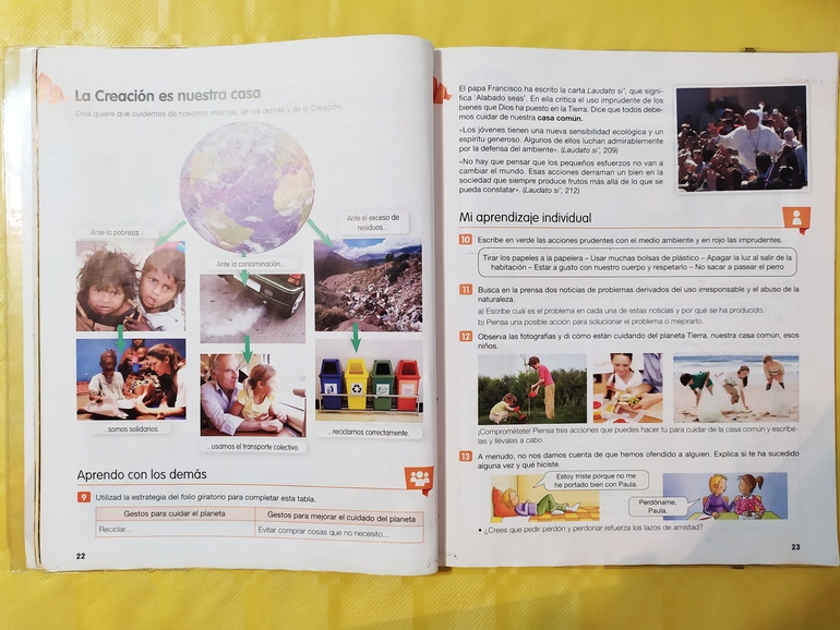 Меня периодически спрашивают, как я отношусь к прививанию религии ребенку-некатолику. Нормально отношусь, потому что большая часть материала об общечеловеческих ценностях, даже молитв там практически нет - так, одна перед едой и одна деве Марии на весь учебник.
