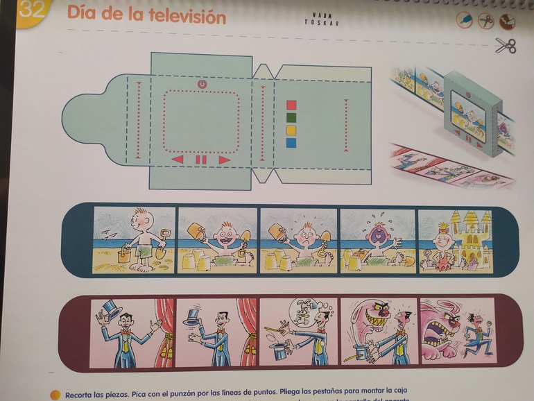 На каждый праздник дети делают поделки, которые напечатаны в конце учебника: например маски на февральский карнавал или мяч из бумаги на день спорта.
