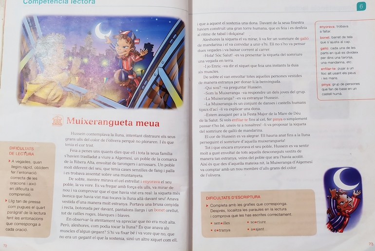 Затем покажу валенсианский язык, это язык местных деревень, на котором сегодня почти никто не разговаривает. Тем не менее, его активно учат в школах (некоторые школы даже преподают полностью на валенсиано) и его нужно сдавать на вступительных экзаменах в местные университеты.