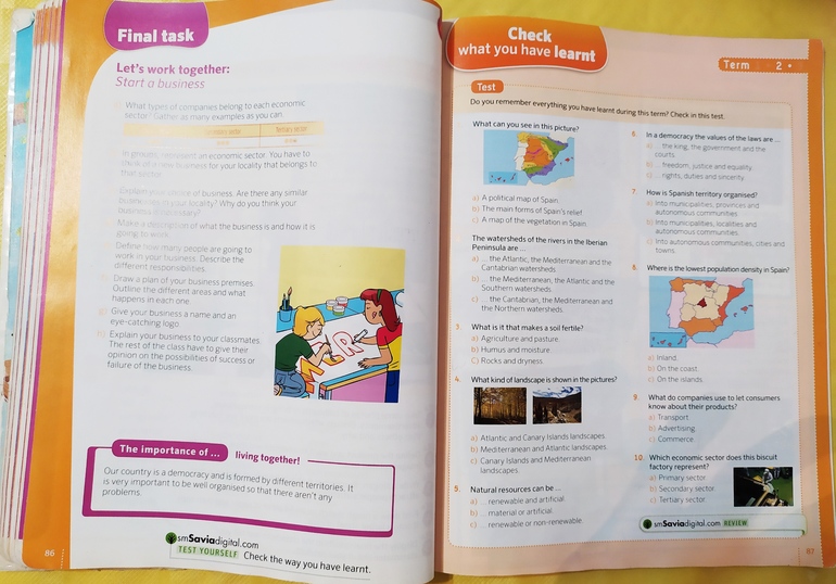 У нас триместры, на каждый триместр по одному учебнику испанского.
