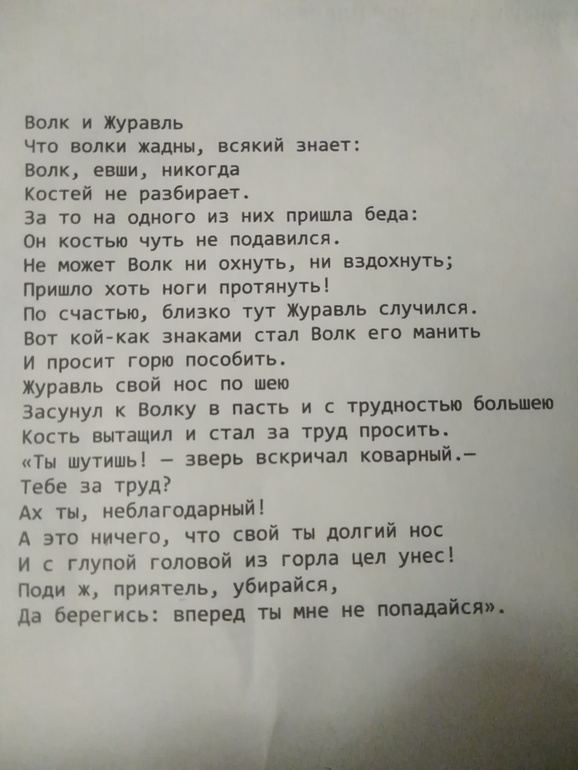 До этого басни крылова шли хорошо, наверное три точно уже учили. А тут и у меня ступор, сама путала слова))