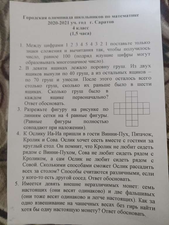 Конкурсы, олимпиады и головоломкиДети сегодня писали городскую олимпиаду по математике. Если кому интересно, прикрепляю задания с нее. Листок им отдали, сказали могут поделиться с кем хотят:)