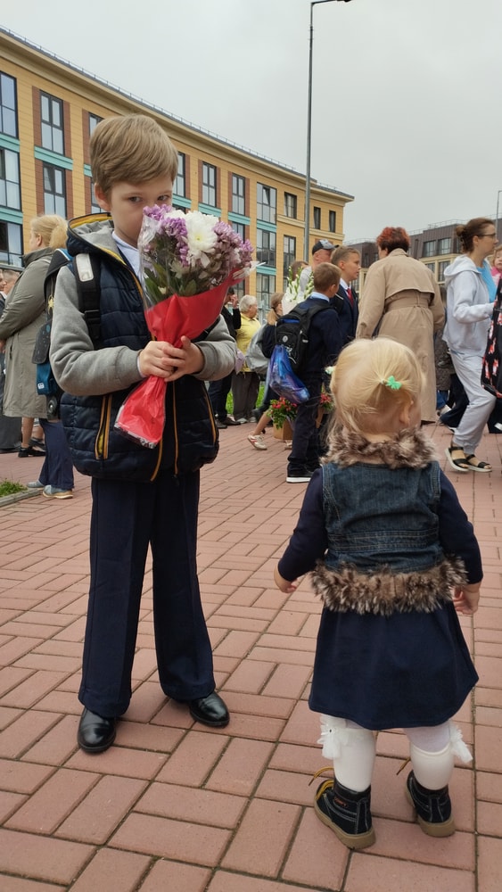 Первый класс. Не про вещи.С опозданием напишу про наше 1 сентября. Это было , конечно, очень волнительно. Хорошо, что оно уже наступило, потому что его приближение давило на меня ещё с зимы, моячило в голове всё лето, поэтому как камень с души. Накануне кстати, волноваться перестала абсолютно, это наверное, как перед родами работает)) Привезли в школу к 10ч, оставили там, пришли к 12 на линейку, отстояли , забрали) приехали свекр, свекровь и моя мама, отчим работал, мой отец ещё в деревне, посидели поели арбуза и чай с тортиком, я привезла отваренные овощи салат в эти свободных 2 часа сделать, да не сообразила , что на новой квартире ни ножей, ни доски нет , ещё и лук забыла, поэтому оставила эту затею) меня все устроило, поели арбуза, поели чай с тортом и разъехались, меня более чем устроило)))) 😄