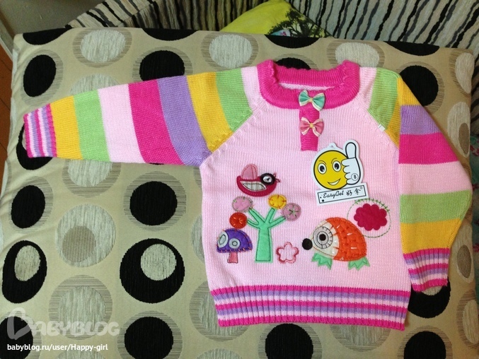 Яркий свитерок размер 2, рост дочки 88 см. Свитерок только этой весной носить! Прямо впритык.