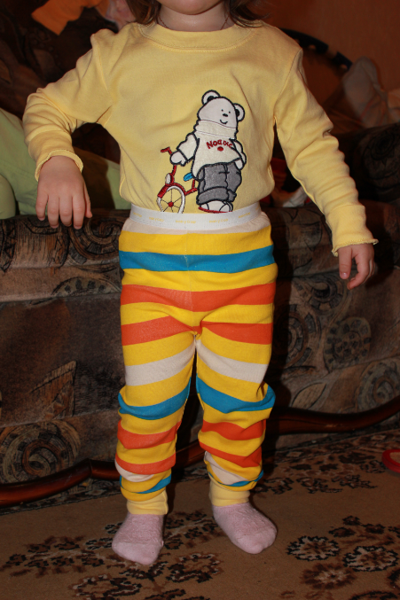 ***ХВАСТИКИ***У дочки рост 86 см.размер пижамки 3Т (думала китай маломерит), Запас большой, можно было смело брать размер 2Т. Пижамку постирала и порадовало то , что не красится. Ткань мягенькая, но мишка стоит колом(((. В общим для 270 руб. очень даже хорошая.