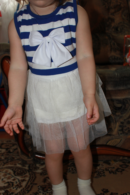 ***ХВАСТИКИ***Вот наше платье. Доча рост 86 см., размер платья 90. Нам мало в длинне - попа наружу. В груди хорошо т.к. это трикатаж и тянется.