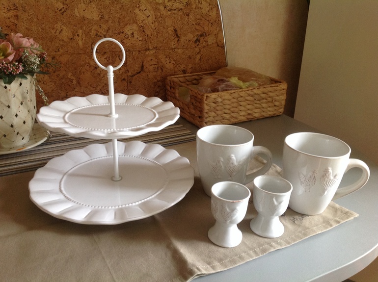 Я вся в мечтах о кухне в стиле прованс, ну или подобной этому стилю... А пока приобретаю потихонечку посуду, чтобы хоть немножечко приблизиться к тому, что зовется ПРОВАНС! На днях я вновь забрела в уютные лавки со всякой всячиной и вышла оттуда не с пустыми руками. Давно хотела себе минажнецу (или как она там правильно называется?). Теперь можно эту хотелку можно вычеркнуть. А еще подставки для яиц и пару кружек с курочками). Хочу постепенно перейти к другой, более прованской посуде. Надоели мне мои люминарковские салатовые тарелки с цветочками!!!! В планах прикупить тарелочки белые тож с курочками и скатерть однотонную. Хочу показать вам мои покупки и хотелки, и фотки витрин магазинчика.