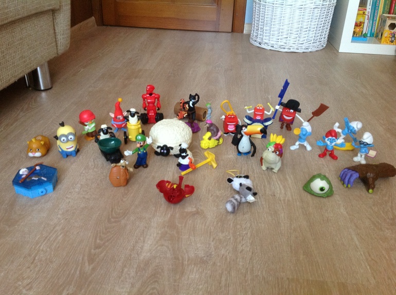 Думаю, у многих , если не у всех, деток есть игрушки из Макдональдса. Мы не исключение. Не буду говорить о вреде фаст фудов. Я сейчас о игрушках. Они, как по мне от личного качества, порой очень интересные. Мне, как маме, они по душе. Хочу показать вам наши запасы. Их немного, но они очень нам нравятся. На фото нет всевозможных машинок, они хранятся где то в коробке с другим транспортом.