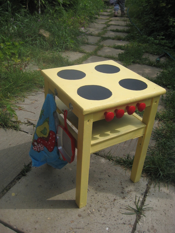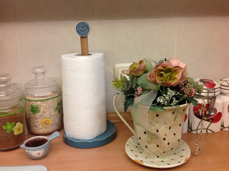 Тумбочка эта, стоит в нашем туалете, который, по совместительству еще и кабинет. На ней помещается ноутбук и кружка с чаем....пить чай туалете - не комильфо, а в кабинете можно:) . Конечно, эта тумбочка изрядно пострадала от Федюниных машинок (он тоже большой любитель там потусить) и от Полиных ванн для кукол...