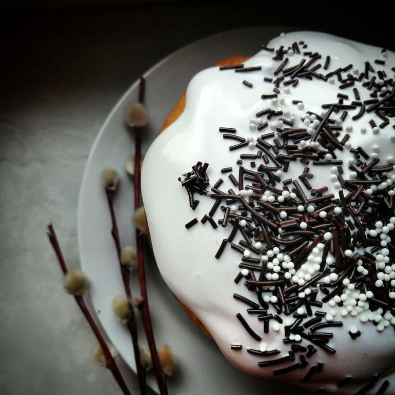 Испекли куличи в этот раз по другому рецепту. Получилось вкусно. Цукаты и изюм никто в семье не любит, делали без них.