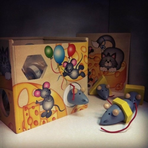 Сегодня гуляя по ТЦ забрали в отдел с развивающи игрушками. Прикупила Кате карточкиДоумана с дикими зверями на будущее, лабиринт небольшой и мышей в сыре. Мыши мне очень понравились! Пока мы их только их в рот тянем, но думаю она обязательно будет использовать их по назначению!