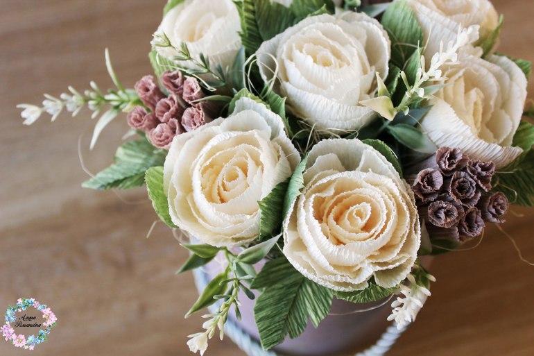 Всем привет! Сегодня я покажу как можно сделать композицию с розами из гофрированной бумаги в коробочке, которая также сделана самостоятельно из обычного картона.