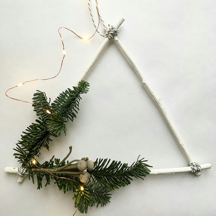 Обожаю новогодние поделки из веток. Например, такой вариант. Очень сканди! Просто и красиво. Мастер-класс в картинках.