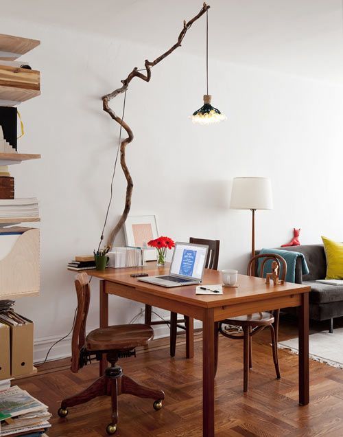 Интересный светильник получился около стола. Мне очень нравится. Осталось только ветку такую красивую найти)