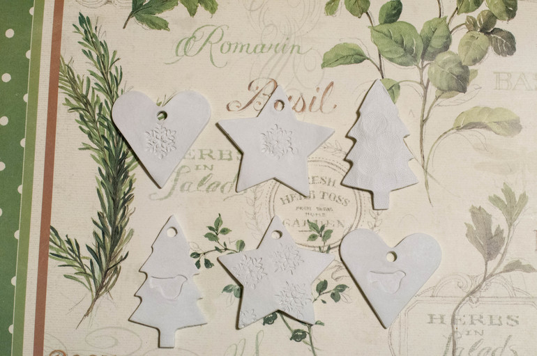 Помните наши с дочкой соленые игрушки, вот из остатков того соленого теста я нарезала вот такие кругляши и сделала оттиск снежинки. Мне нравится, как получилось :)