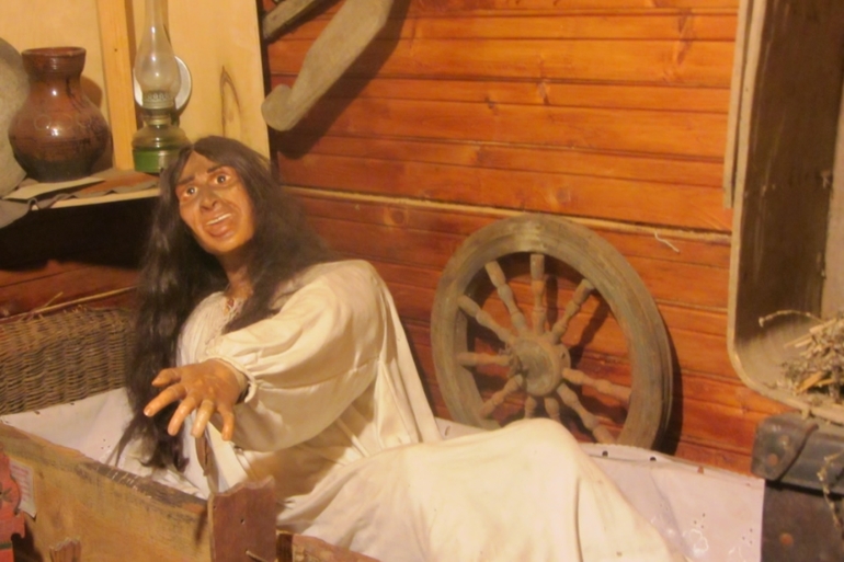 Много в музеи предметов старинной утвари: старинных коромысел, кованных сундуков, чугунных утюгов, прялок и бутылей. Есть черепа животных и реконструкция захорнения ведьмы. Можно узнать в музеи про Макушу и Шиша, про назначение рушников (к сожелению фото перестали вставляться) Можно преобрести сувениры-обереги.