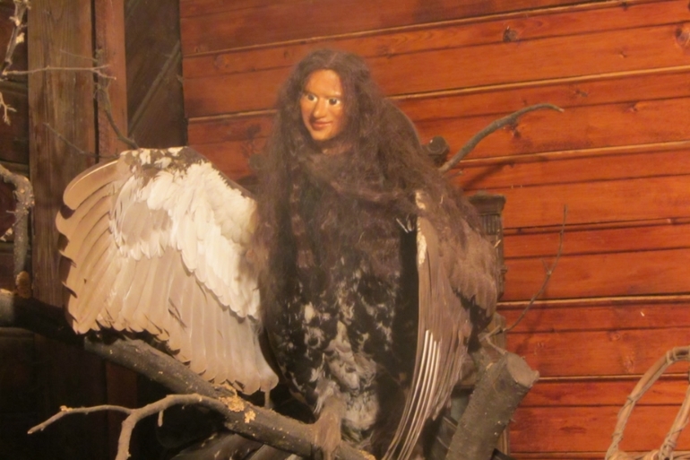 В первой комнате гостей встречает птица Сирин и ведьма в гробу.