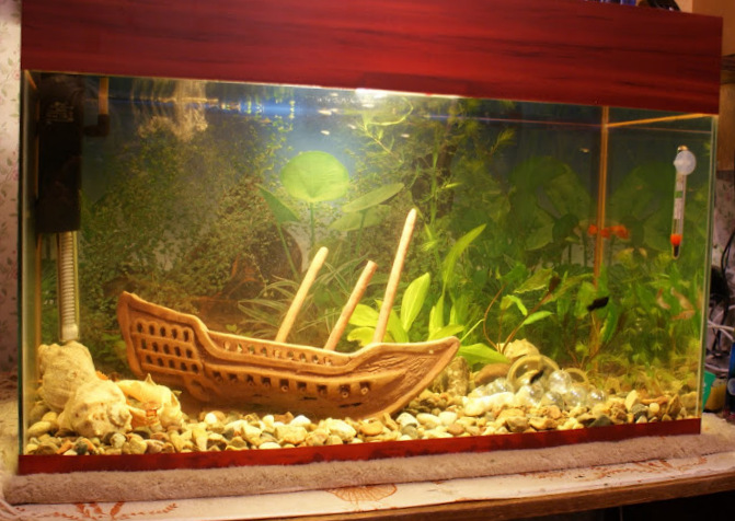 Ну и конечно самое главное, это затонувший корабль с сокровищами в моём аквариуме. Пусть он самый простой))))) зато с сокровищами) и такой любимый