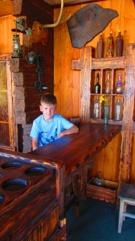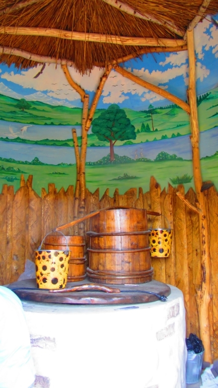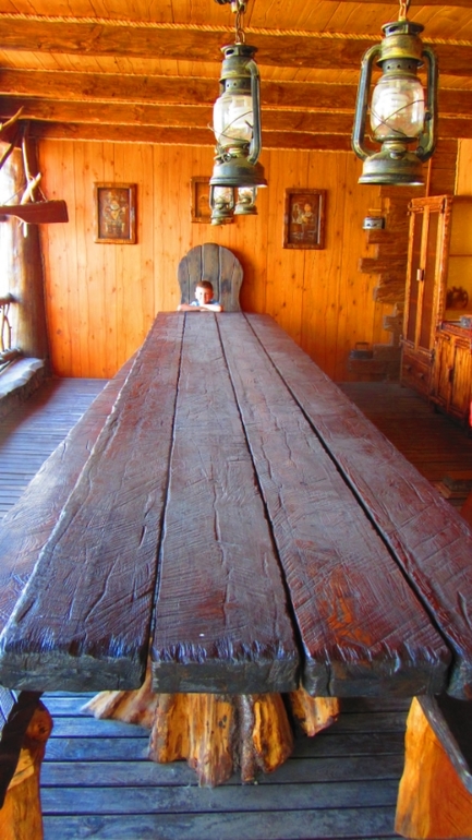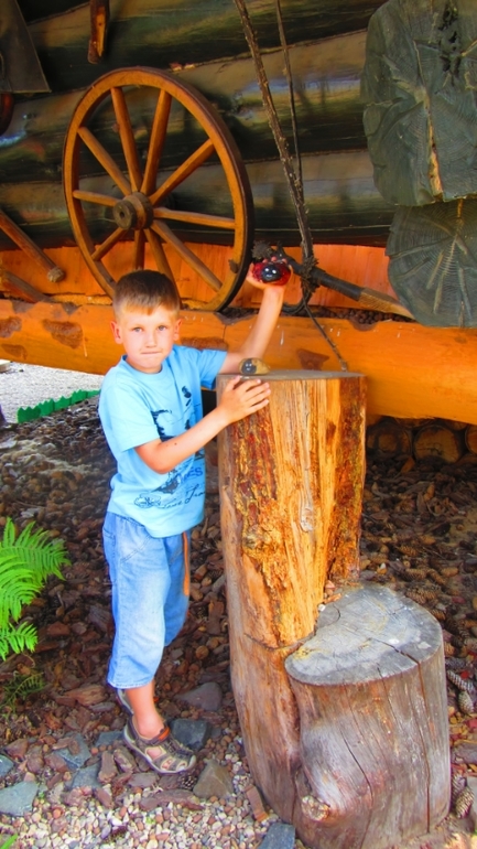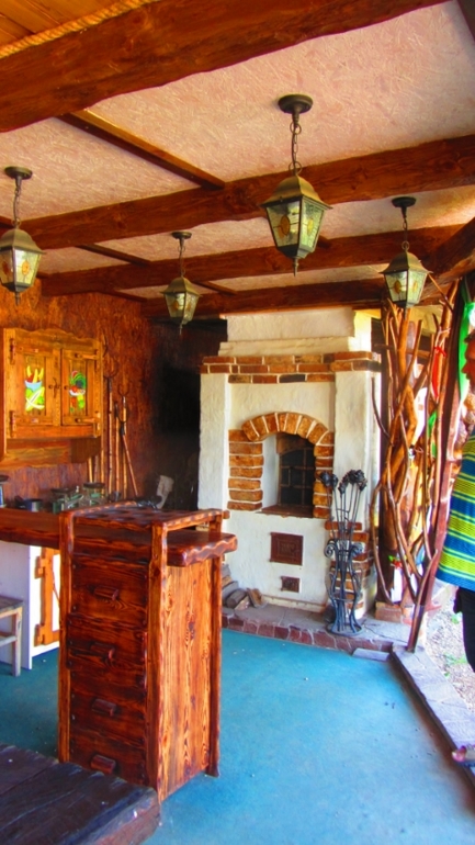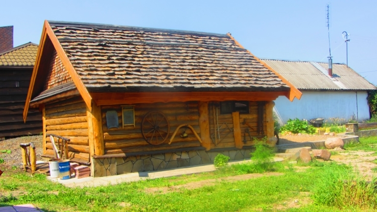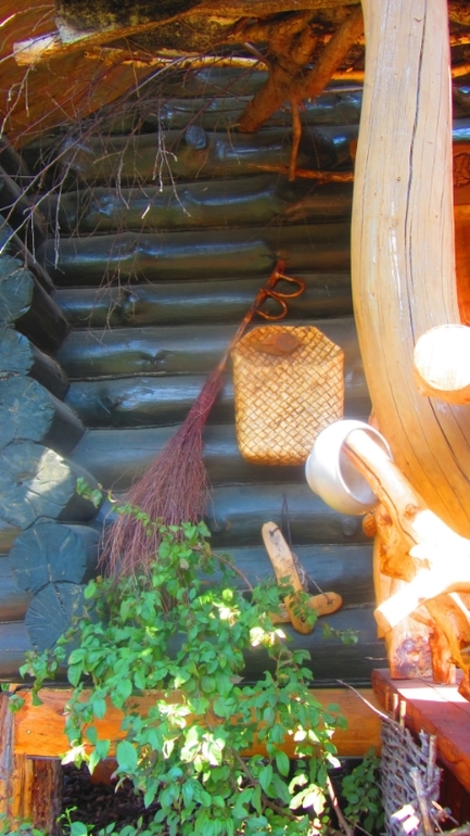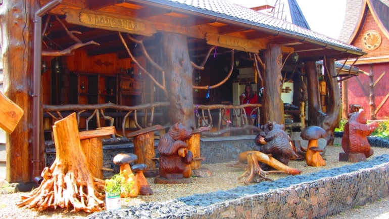 В начале построили баньку и место отдыха около нее, украсили колодец, потом выстраили трапезную, чтобы в праздники можно было собраться за большим столом всей семьей, появилась избушка на курьих ножках.