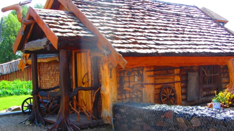 О домике нам сказала местная жительница (когда ехали в Калязин даже и не слышали про него). Искали мы сиё сказочное место очень долго, т.к. никаких указателей к нему нет. Да и не удивительно это. Ведь домик Бабы Яги создавался не для туристов, а для "личного пользования" Всё это великолепие было построино усилиями одной большой, дружной и очень творческой семьи.