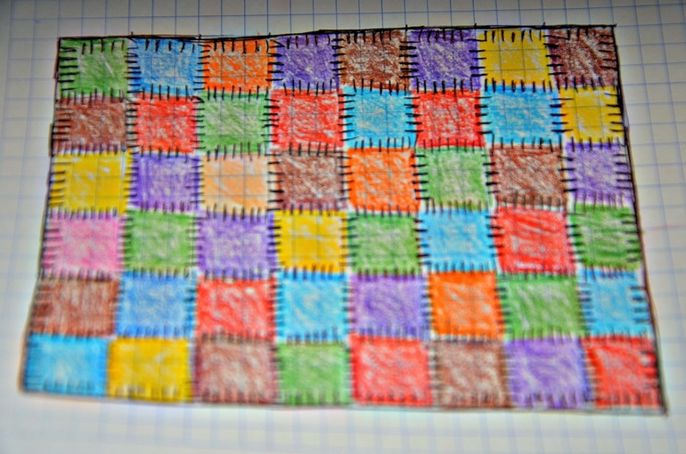 Сделано рукамиЯ придумала, как сделать самодельное покрывало на двух спальную кровать. Хочу крючком навязать разноцветных квадратиков, а потом черными нитками сшить их. Визуализировала эту идею: