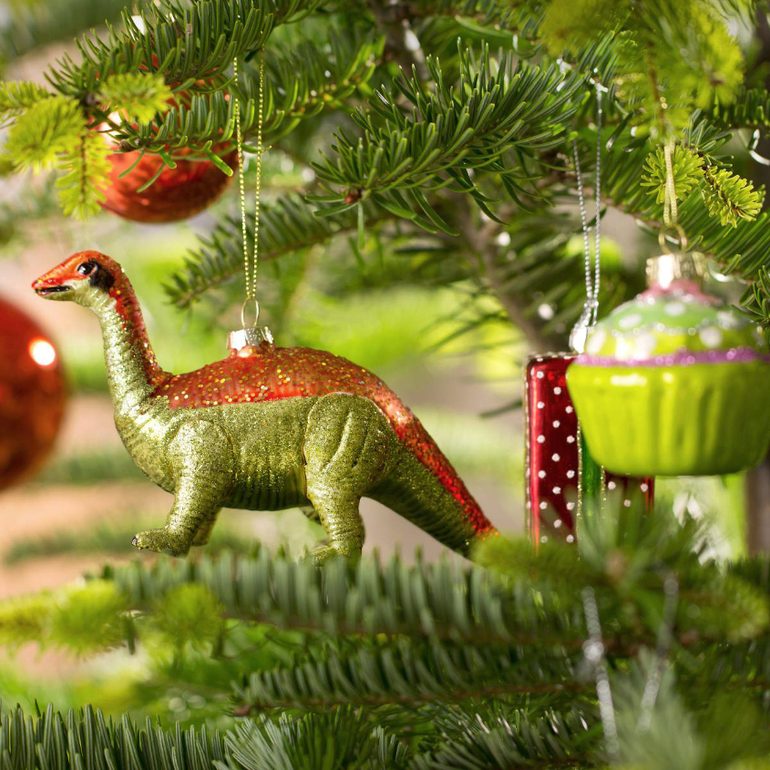 интересные елочные игрушки. Огурец - так это вообще русская тема...Динозавры шикарные